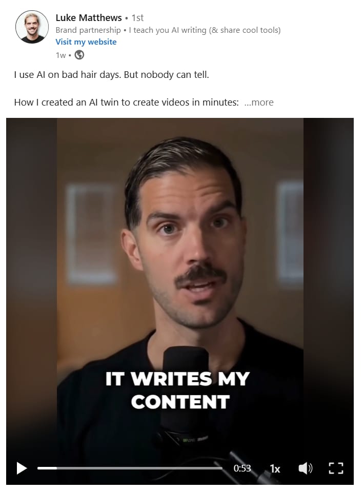 Luke is currently shilling an AI video generator, using a horrible AI-generated video to do the dirty work for him.